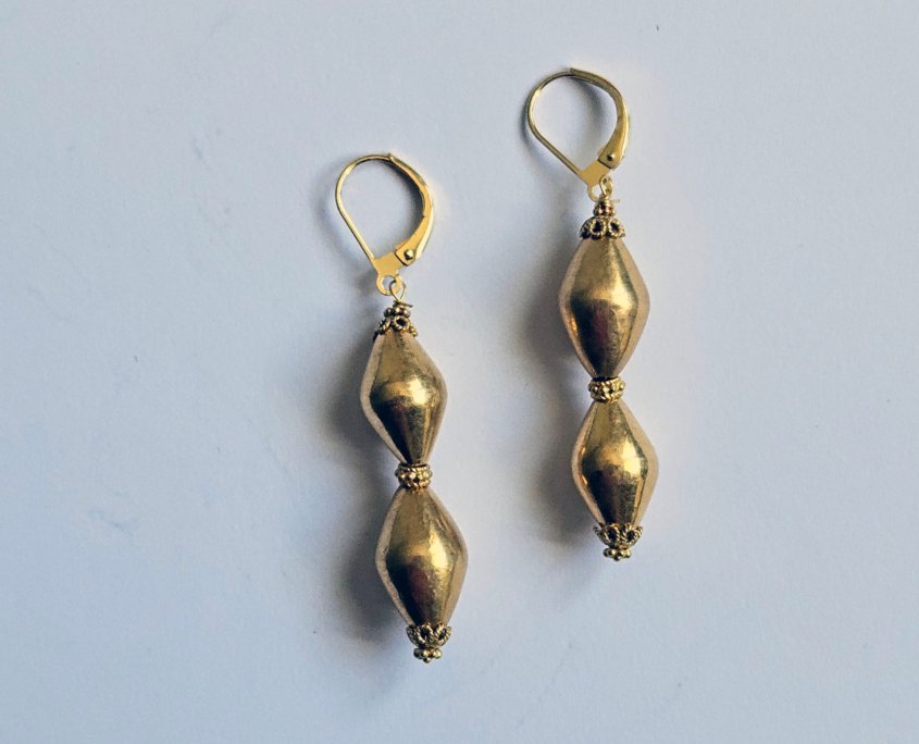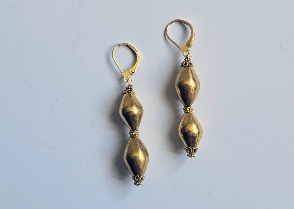 This pair of earrings is composed of antique gold beads from Goa and vintage gold pieces from Rajasthan.