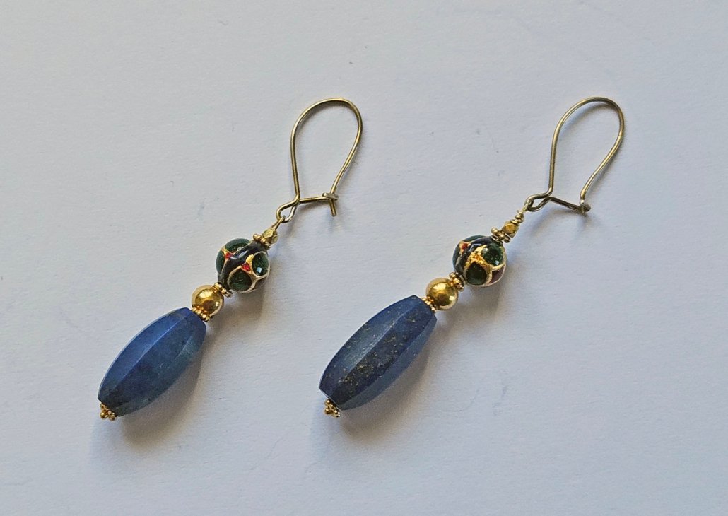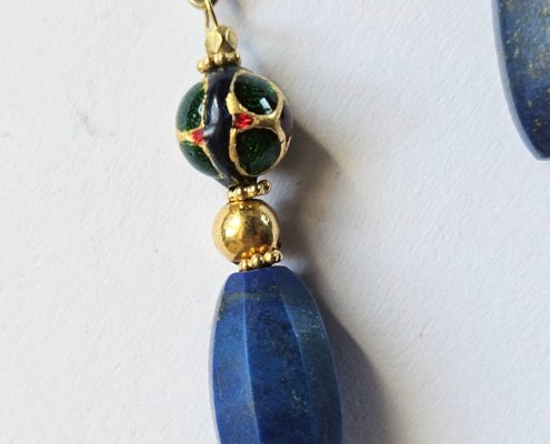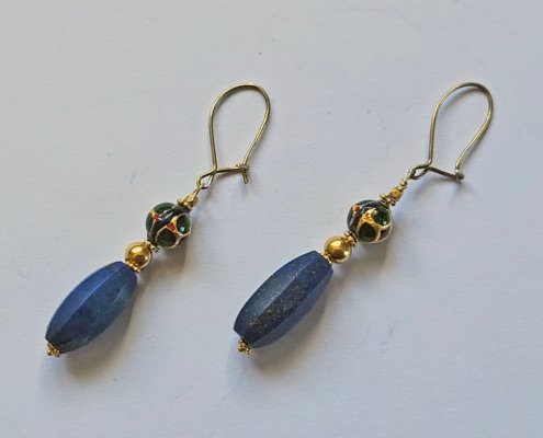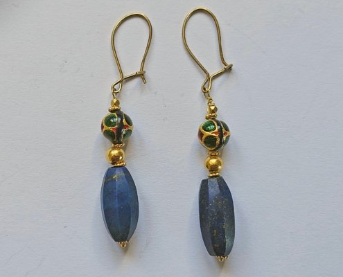 This pair of earrings is composed of vintage gold beads from Rajasthan and high quality Lapislazuli from Afghanistan