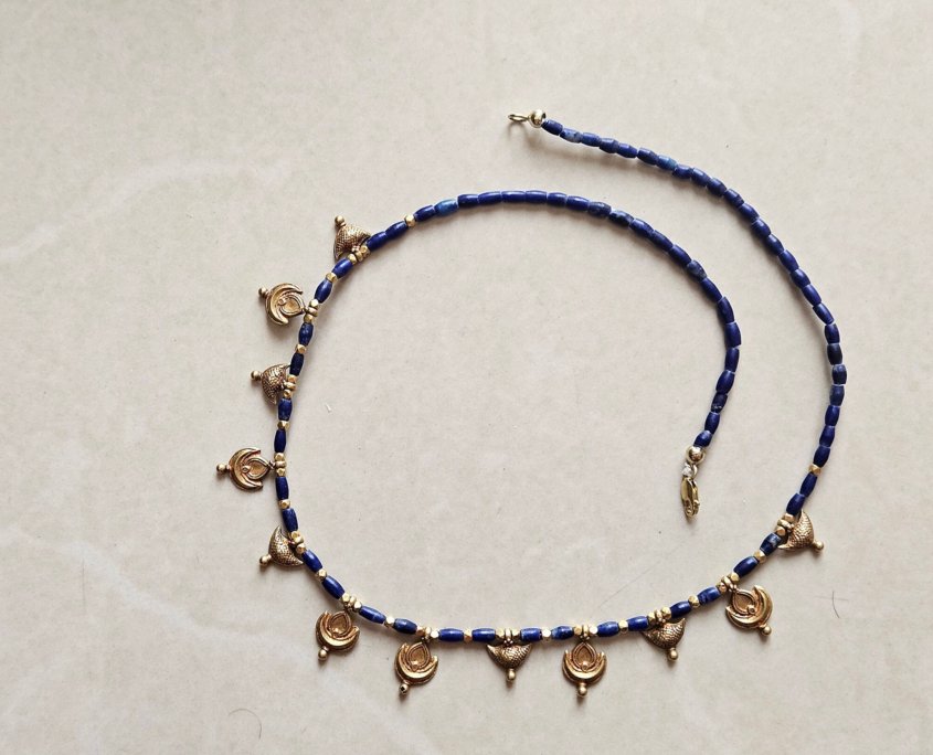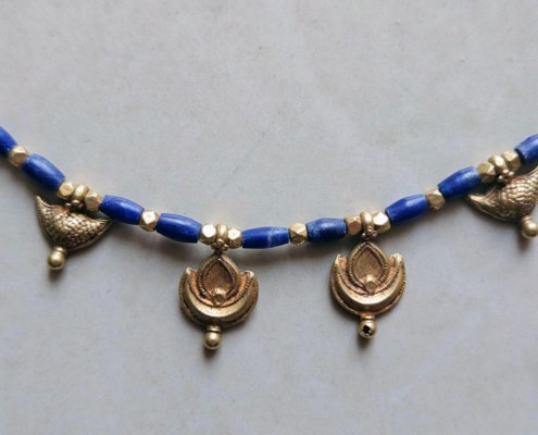 In between 12 tiny old golden pendants, originally from a Saaj-Thali from Karnataka