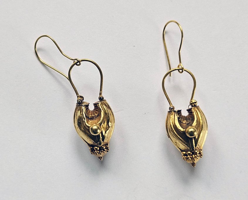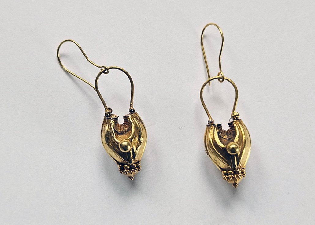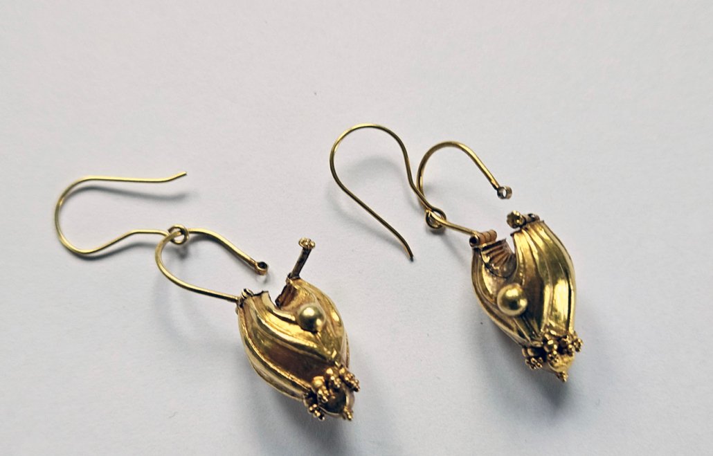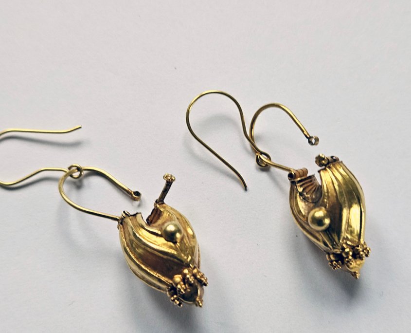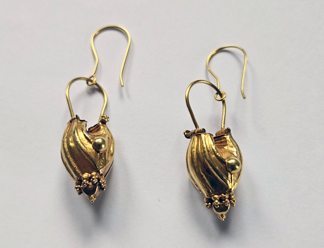 A Pair of golden Earornaments from Kerala, India (ananthodi kadila)